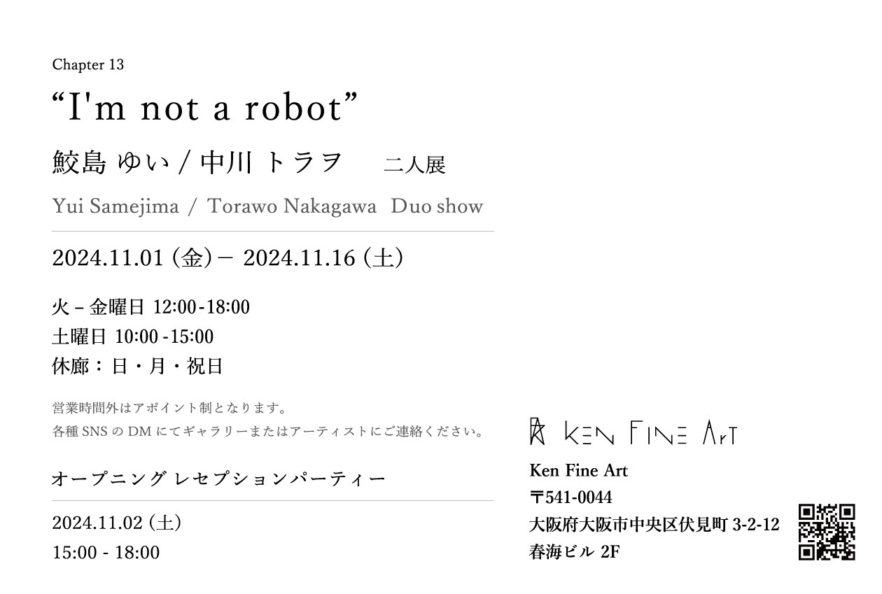 このたびKEN FINE ARTでは、鮫島ゆいと中川トラヲの2人展 「I'm not a robot」を開催いたします。